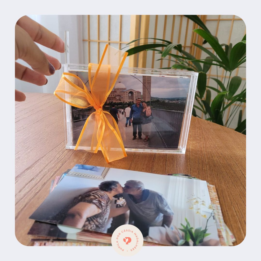 Porta-retrato de acrílico, atemporal e sofisticado. Além de decorar sua casa, vai guardar mais de 50 fotos tamanho 10x15 para ver sempre que quiser.